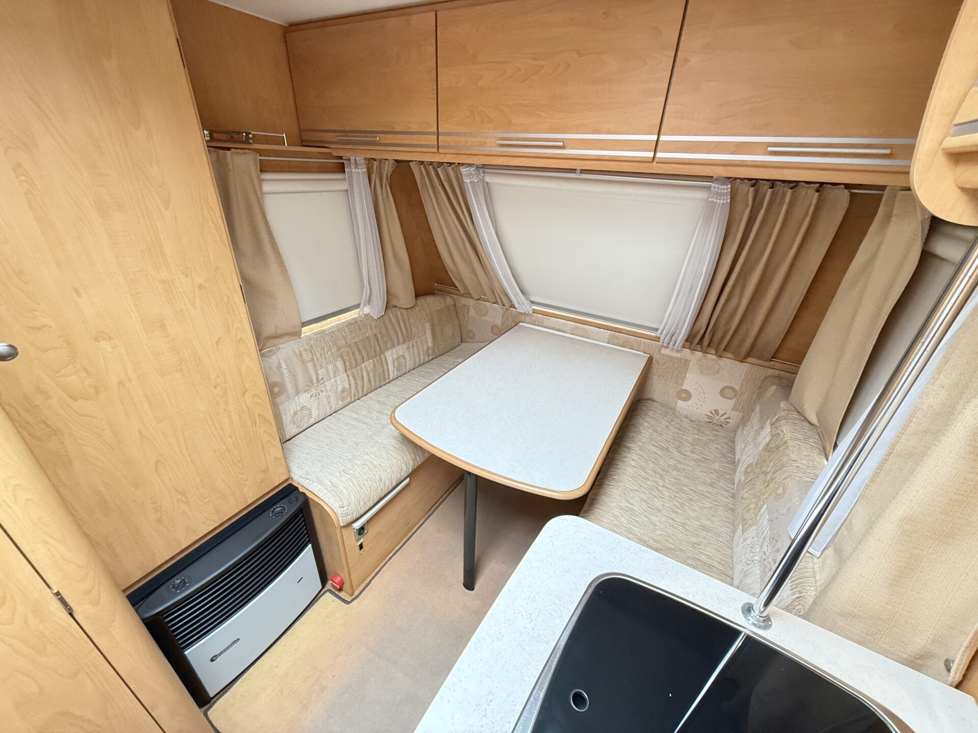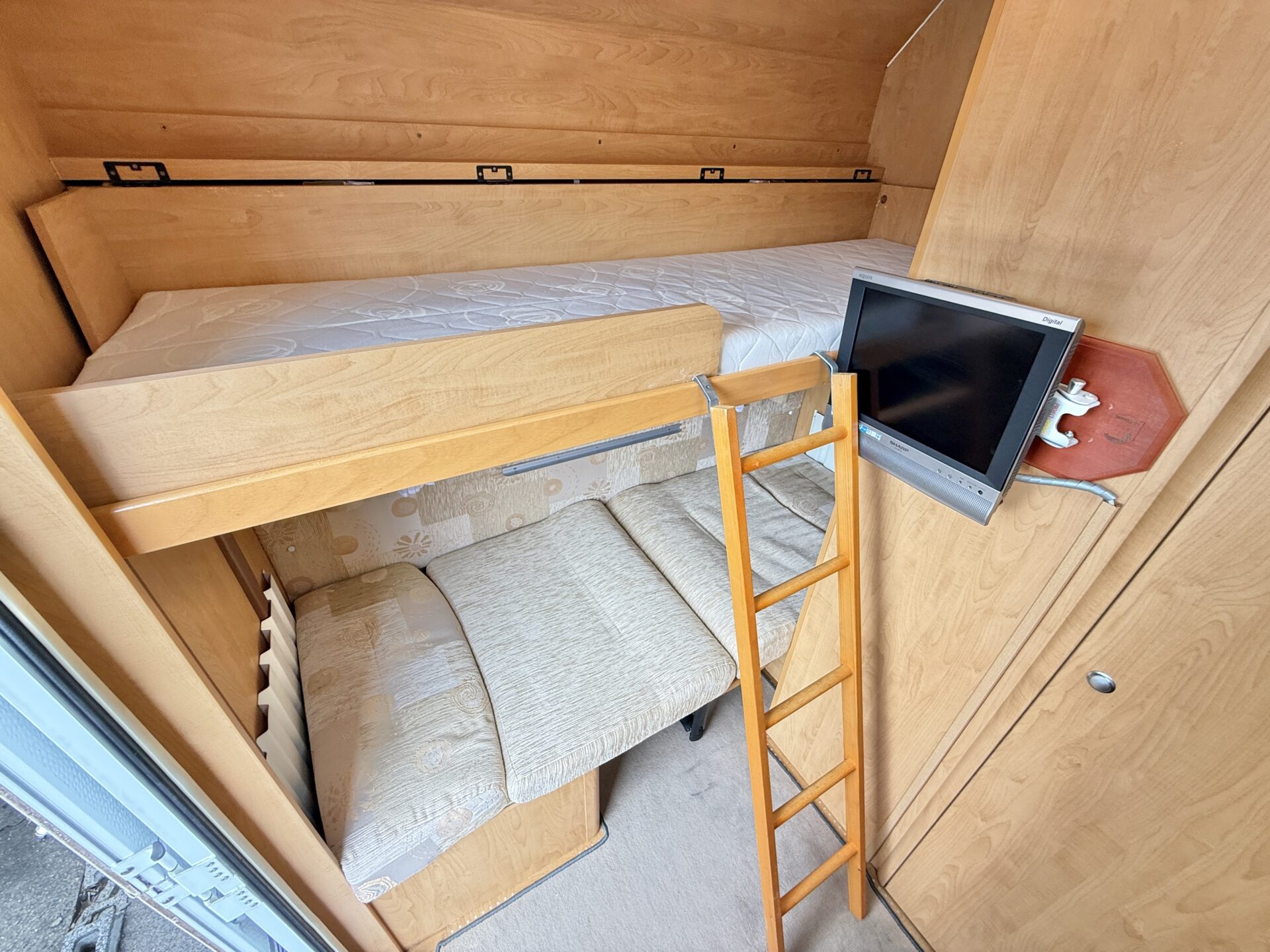 エメロード370は就寝定員4名!😊 前方に常設ダブルベッド、後方に2段ベッドで家族やペットがゆったりくつろげ、室内で着替えや準備がラクラク!ペット連れなら愛犬も自由に動き回れます!🐶 RVパークの温泉でリフレッシュ後、ダイネットで家族ディナータイム。まるでヨーロッパの小さなヴィラのような居心地!🏕️