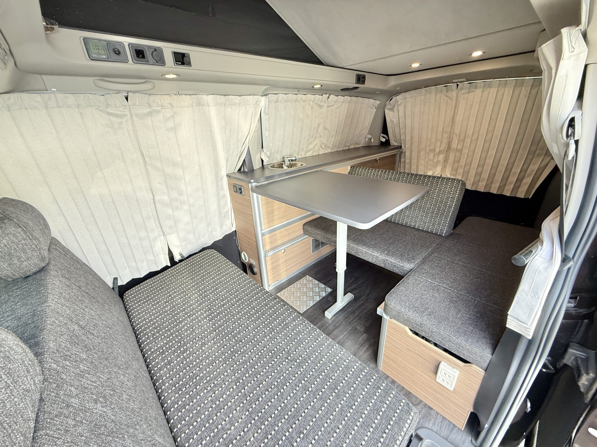 コンポーザーは乗車定員6名、就寝定員4名!😊 キャラバンの広い室内で対面ダイネットと常設ベッドがゆったり配置され、ポップアップすれば車内で立って着替えやスケッチがラクラク!ペット連れなら愛犬も広々空間で自由に!🐶 RVパークの温泉でリフレッシュ後、ダイネットで創作ノートを開いて旅のスケッチ。まるでアトリエのリビングのような居心地で、インスピレーションが湧きます!🏕️