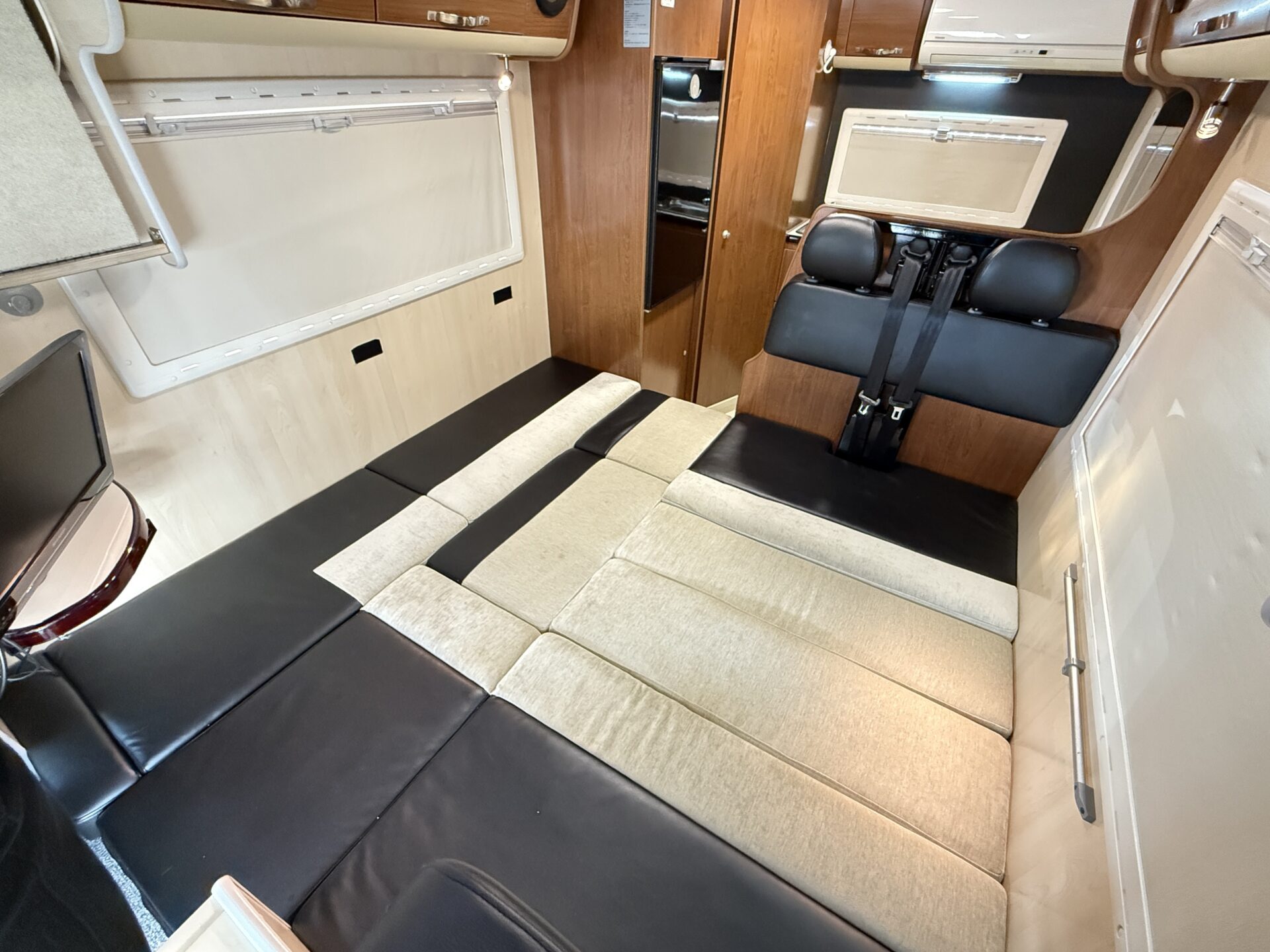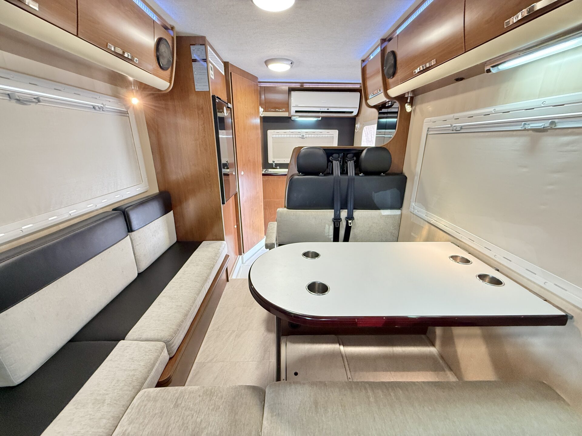 アクティブパッケージは乗車定員7名、就寝定員4名!😊 リアエントランスと対面ダイネットで広々リビングを確保し、ツインロフトベッドでゆったり休息。ペット連れなら愛犬も広々空間で自由に!🐶 RVパークのドッグランで遊んだ後、ダイネットで家族ボードゲーム。まるでロッジのリビングのような居心地で、アクティブな1日の締めくくり!🏕️