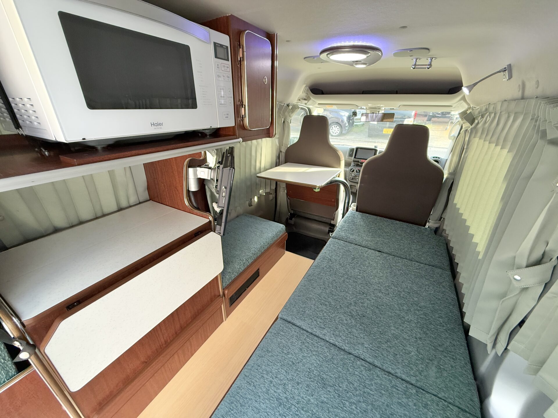 マイクロバカンチェスはキャビネットや後部スペースに収納を充実させ、キャンプギアやペットのグッズをスマートに整理!🧳 軽自動車ながら空間効率が高く、荷物が多くても安心。隠れ家のクローゼットのような収納力!✨