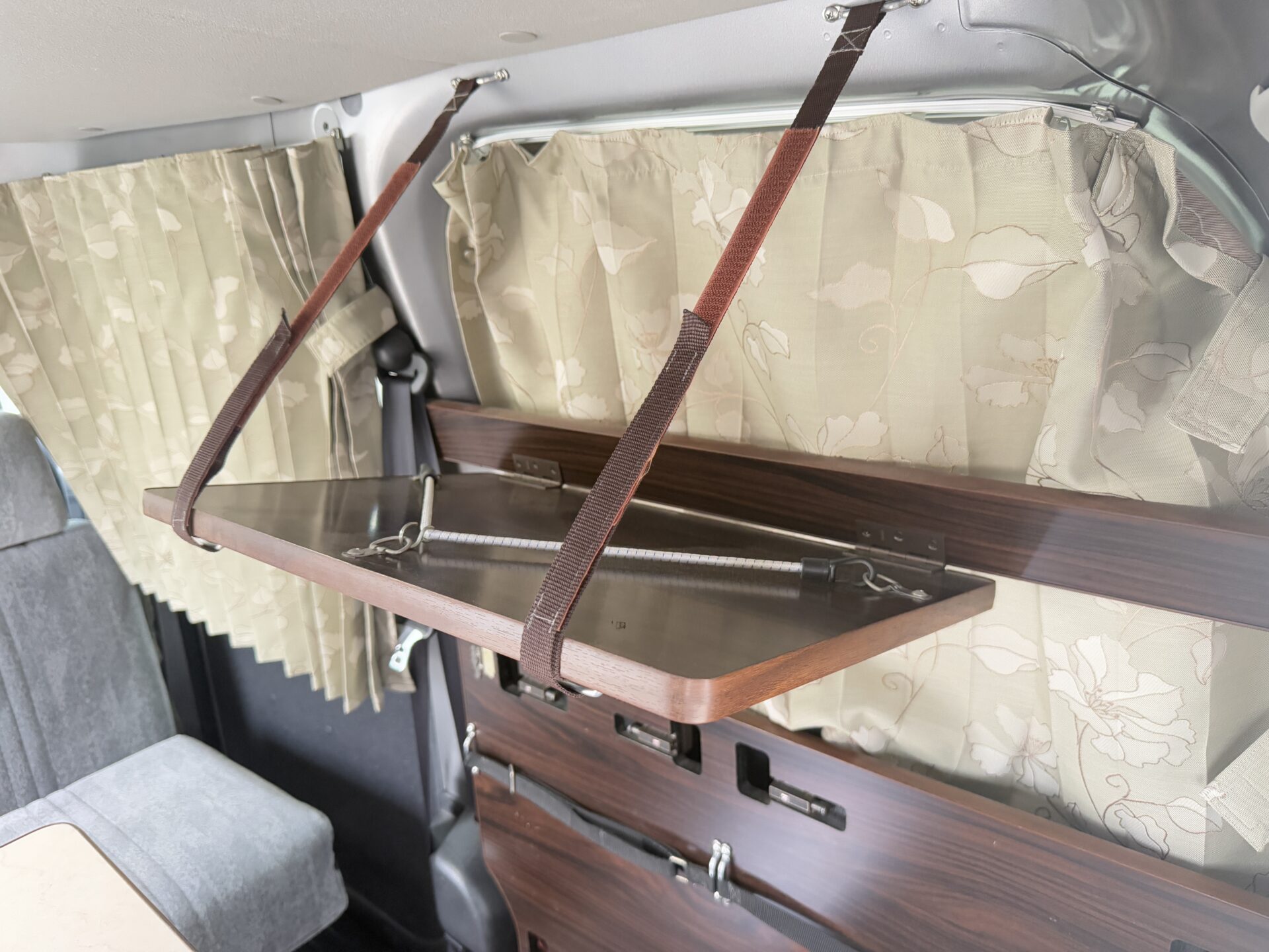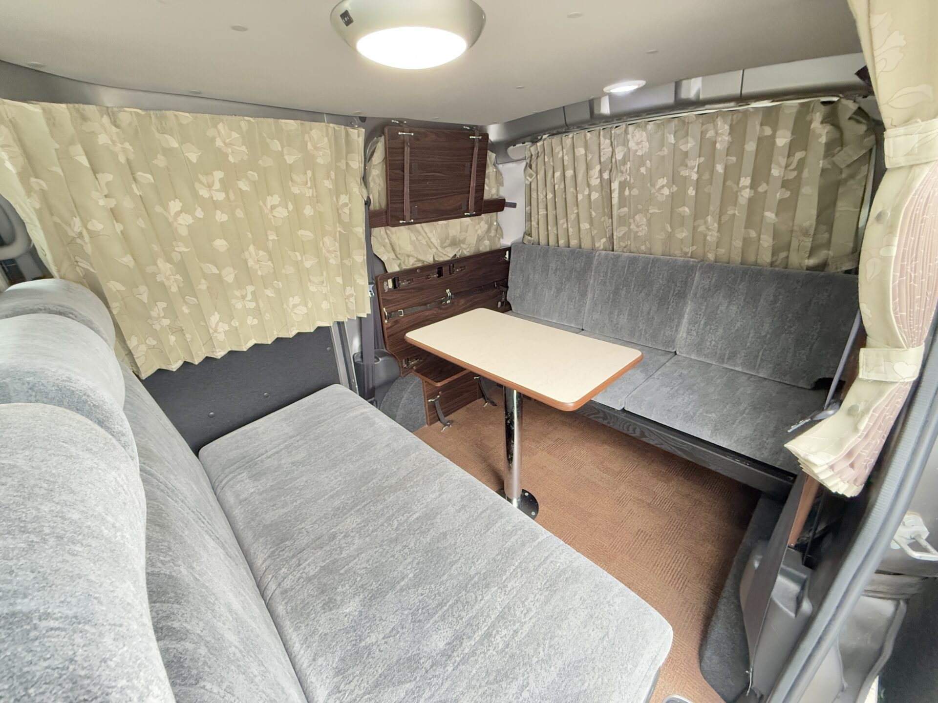 FFヒーター、サブバッテリー、リアラダー、ルーフキャリア、テーブル、カーテン