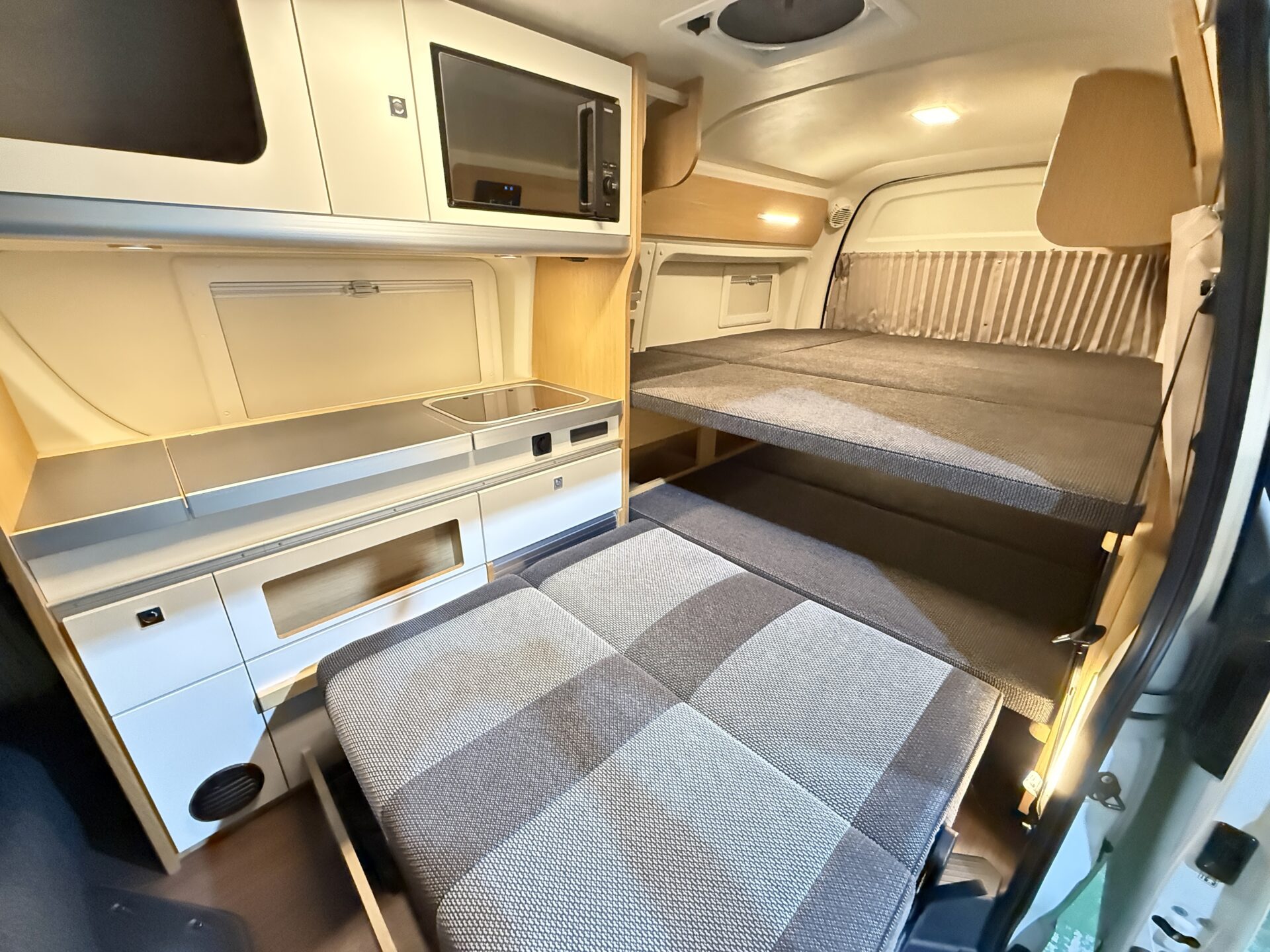 今回買取させて頂いたバレイアはシンク、冷蔵庫、電子レンジ、FFヒーター、家庭用エアコンを搭載した洗練内装!🍳 ペット連れならエアコンで車内を快適に保ち、愛犬の暑さ対策もバッチリ。RVパークの電源を使えば、電子レンジで地元食材の創作料理を楽しみ、ゴミ処理サービスで翌朝の準備もスムーズ!まるでアパートのキッチンのような便利さ!😉