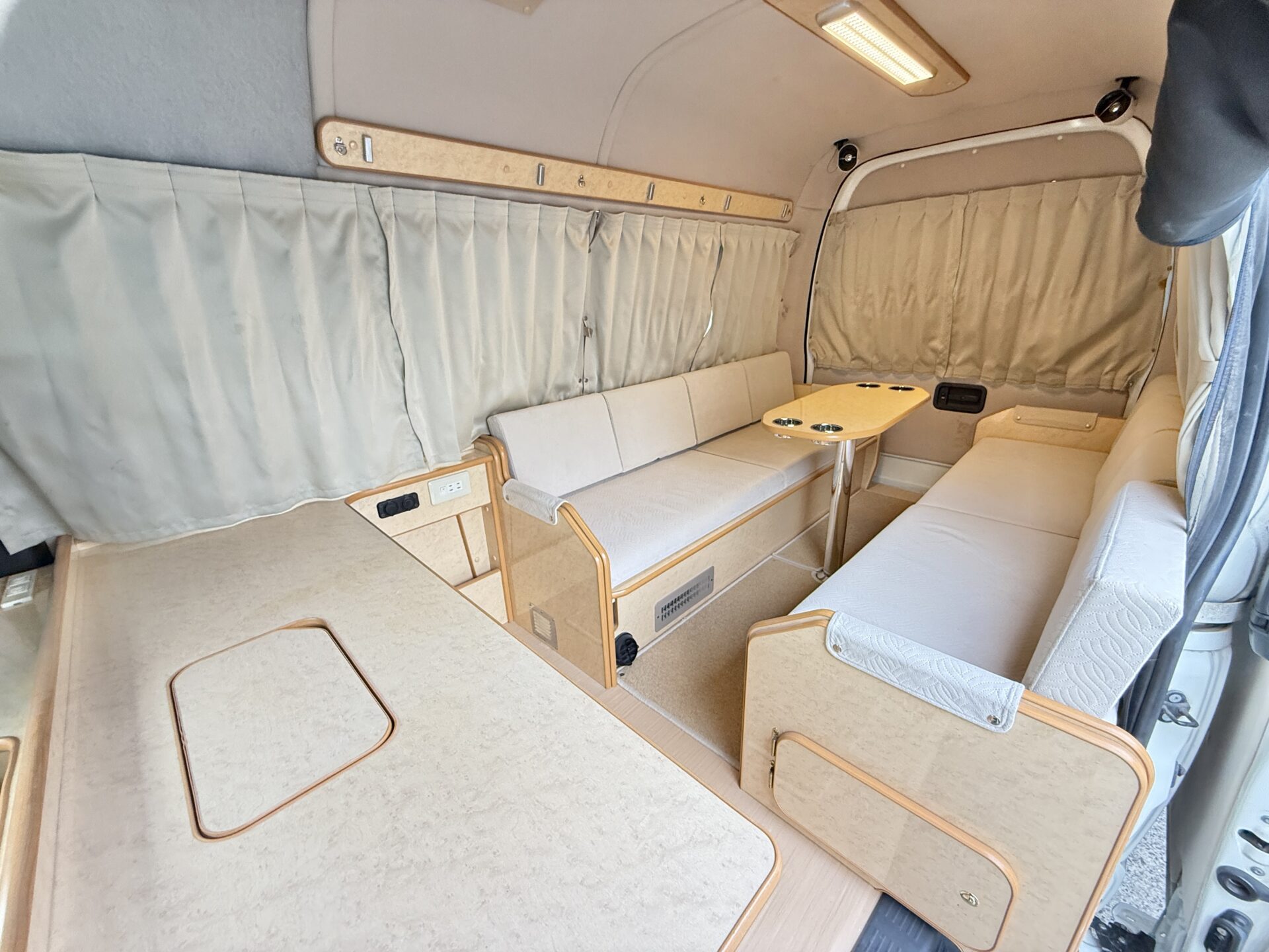 トヨタ・ハイエース標準ボディハイルーフをベースに、宮大工工法で丁寧に作られた家具と実用装備が魅力。シンク、冷蔵庫、FFヒーターがしっかり備わっていて、夫婦やペットとの静かな旅にぴったりです!ABCキャンパーから、FOCS DSコンパクトの魅力をたっぷりご紹介します!✨