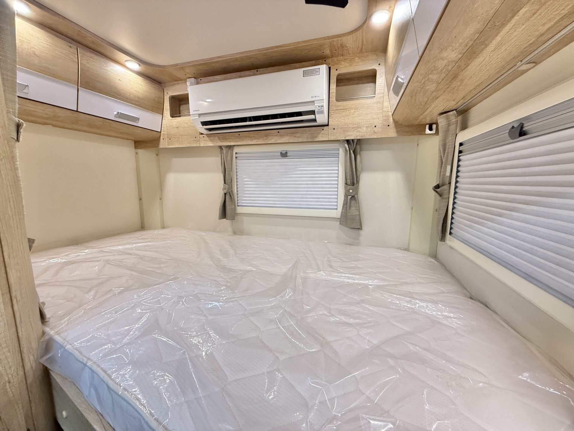 エアコンとFFヒーターのダブル装備で、夏は涼しく冬は暖かく! 真夏のキャンプ場でもエアコンを効かせてぐっすり、冬はFFヒーターでポカポカ。 ペット連れなら愛犬の熱中症・寒さ対策も万全。RVパークの電源を使えばエアコン24時間稼働で、まるで別荘のエアコンルーム!❄️☀️