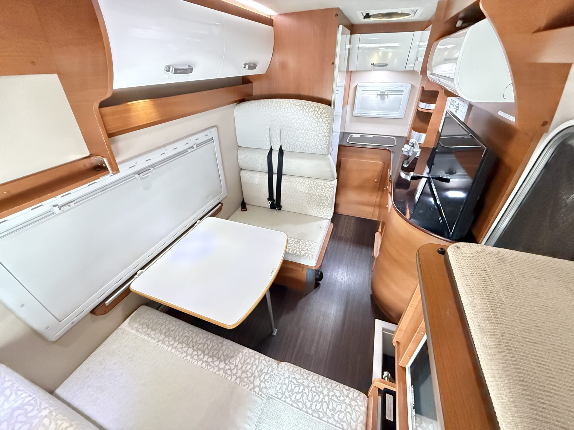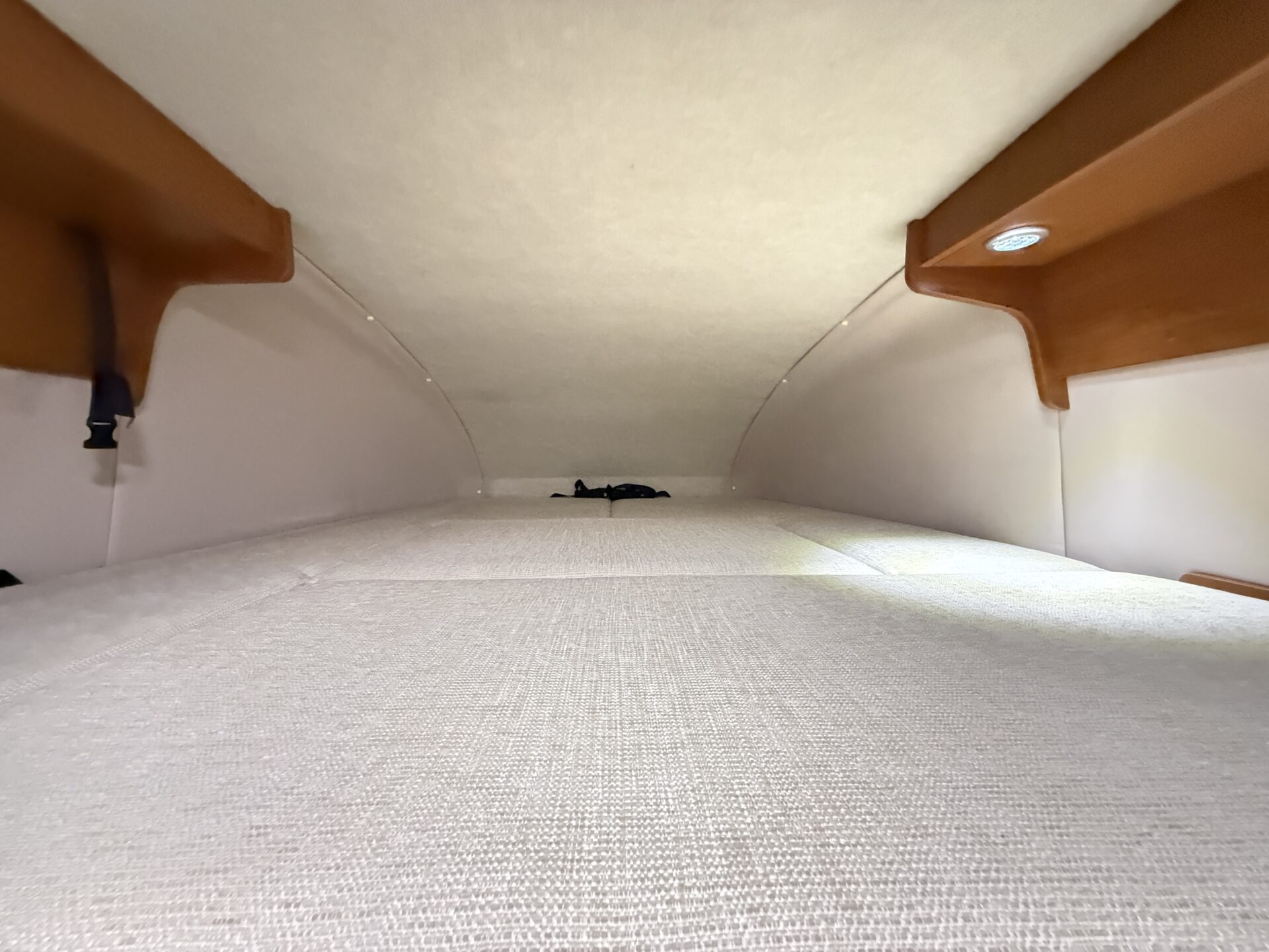 バンクベッド搭載で、大人も子供もゆったり寝られます! ベッドメイクが簡単で、朝起きてすぐ準備可能。 ペット連れなら愛犬も一緒に寝られる広さ。RVパークで夜更かしした後、すぐにベッドにダイブできるのが嬉しい!😴