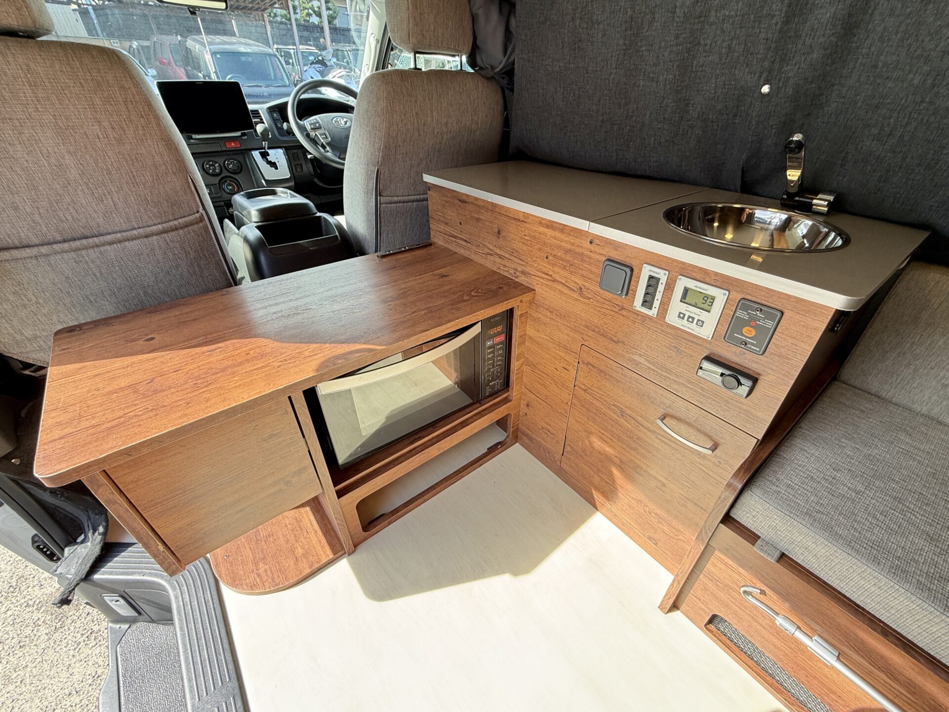 電子レンジで温かいご飯をすぐに作れて、FFヒーターで冬もポカポカ! 夏はエアコン(オプション)で涼しく、冬はFFヒーターで暖かく。 RVパークの電源を使えば電子レンジで地元お惣菜を温めて即ディナー。まるでコテージの暖炉とキッチンのような頼もしさ!😉